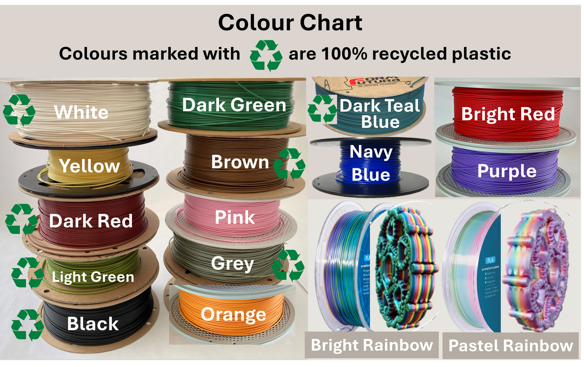 Please let us know which colour tower and which colour tray you would like in the box provided. Please see the colour chart photo for all the colours we have available including recycled plastic options. You can lean more about where our recycled plastic comes from in the 'About Us' page.