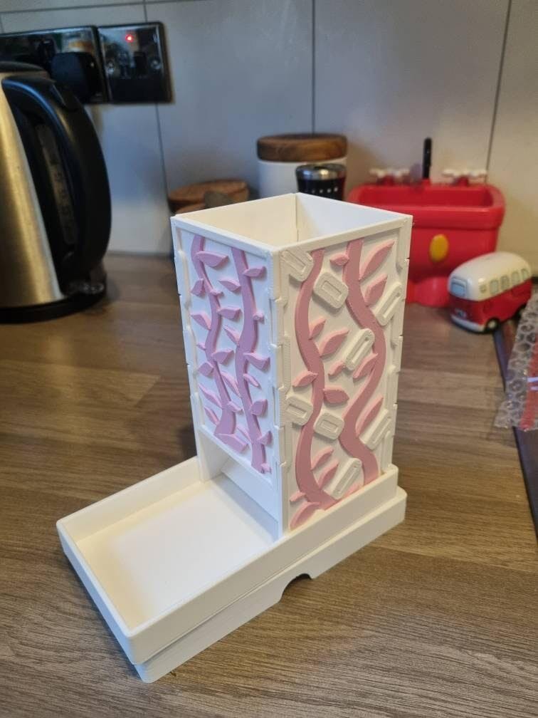 This dice tower was designed by Oliver Henriksson. Thank you to Oliver for licencing this design under the Creative Commons Attribution 4.0 International licence which allows us to produce them and sell them in our shop. Here's a link to the licence: https://creativecommons.org/licenses/by/4.0/. Check out this design here: https://www.thingiverse.com/thing:4936938 And their designer page with their other designs here: https://www.thingiverse.com/theduker/designs Their designer name on Thingiverse is TheDuker.